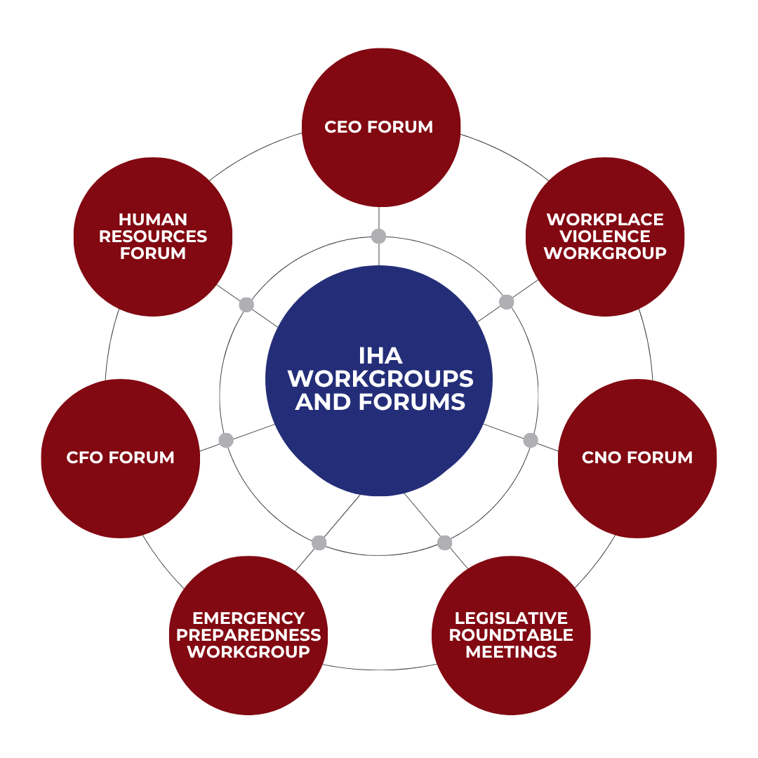 IHA relies on the active involvement of its members to inform its priorities and approach to policy and advocacy. Members contribute their knowledge and experience through participation in numerous committees, workgroups, and discussion forums that bring together representatives from a wide range of healthcare settings, including hospitals of all sizes, missions, and regions across the state.